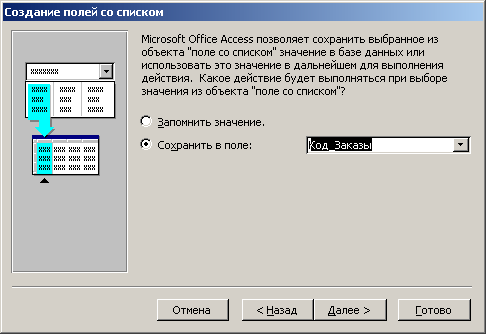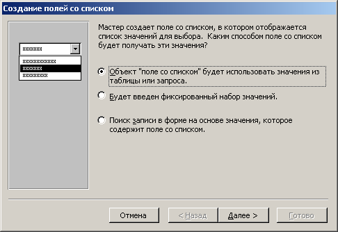 Создание полей со списком (Combo Box Wizard) (рис. 25.16). Поставьте переключатель в положение