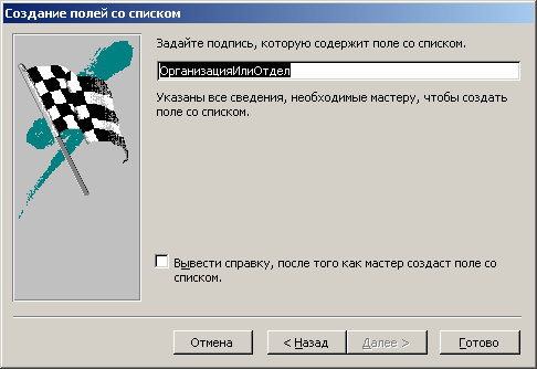 В последнем диалоговом окне задайте подпись, которую будет содержать поле со списком (рис. 25.21). Нажмите кнопку