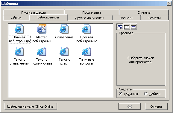 Шаблоны для создания веб-страниц в Word 2003